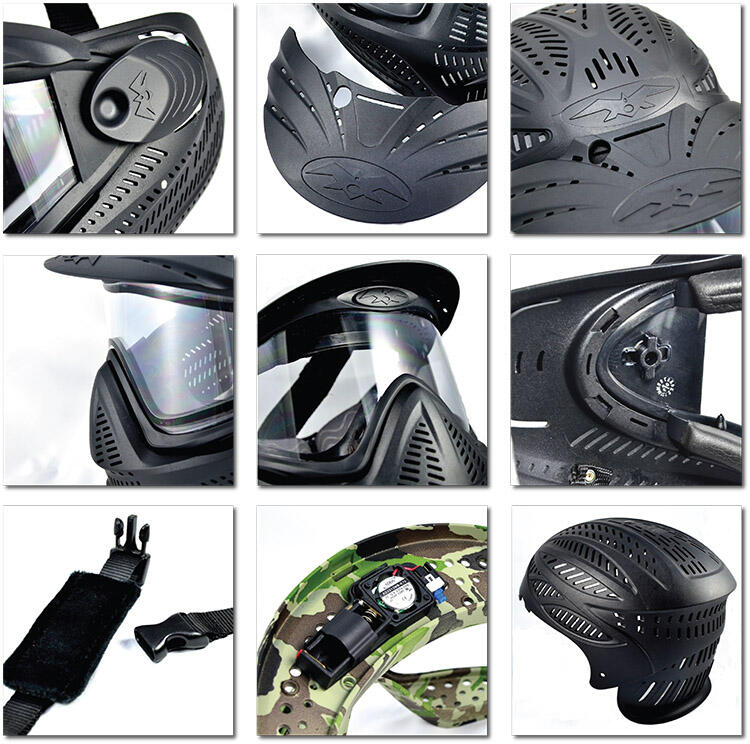 BJ59H 全罩頭盔式漆彈面罩為專為入門初學者玩家所設計,特別是青少年及兒童,提供卓越的防護與舒適性。被譽為防護性最佳之漆彈面罩,具備全頭部覆蓋設計,避免頭頂與後腦杓受傷風險,能在激烈對戰中提供全方位保護。面罩配備可拆式鏡片系統,方便清潔與快速更換,確保視線清晰無阻礙。護目鏡內襯柔軟防水泡棉,可貼合臉部輪廓,提供舒適又穩固的配戴感受。人體工學設計大幅提升整體舒適度,減少長時間遊戲時的疲勞感。