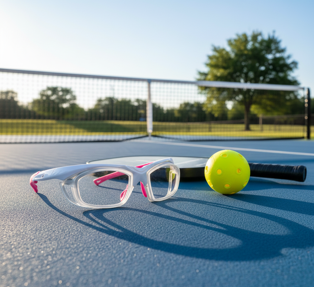 J140P 黃瓜球運動眼鏡專為高速節奏的匹克球運動(又稱泡菜球、黃瓜球)設計,兼具耐用性、清晰度與舒適度。堅固的防撞鏡框與聚碳酸酯透明鏡片,提供可靠保護並保持清晰視覺。具備 UV400 阻隔功能,可有效防護有害光線;鏡片可輕鬆拆卸,方便清洗或更換。TR90 延伸型鏡框可安裝度數鏡片,對需要矯正視力的玩家相當便利。彈性鏡腳結合橡膠尾端與可調式鼻墊,帶來穩定且舒適的配戴感受。通過 ASTM F3164 認證,非常適合室內或夜間比賽使用,兼顧安全與表現。